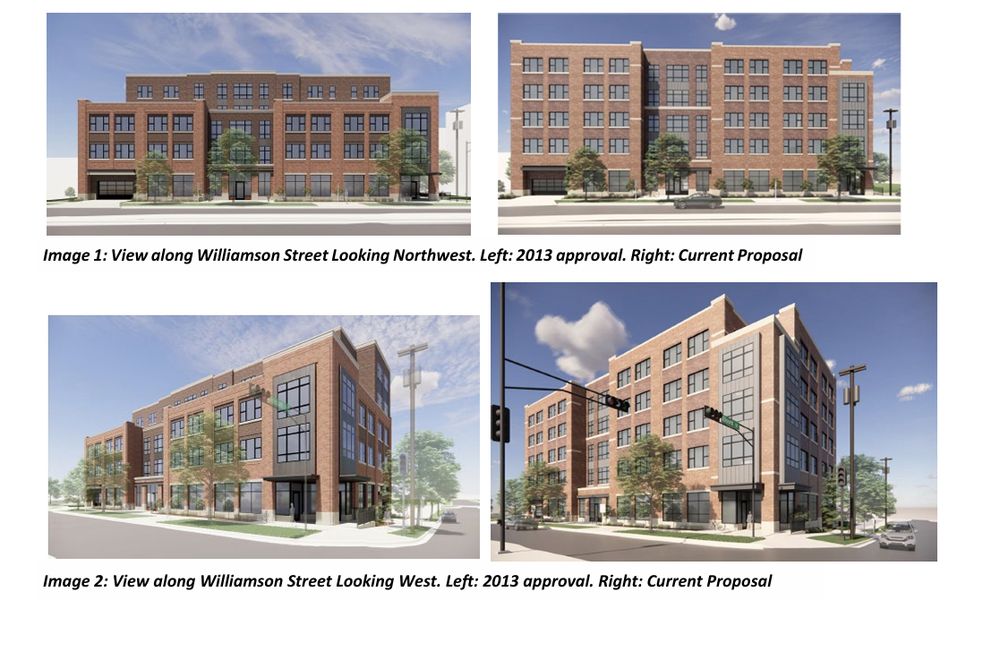 Planning Context: The site is located in a TOD overlay, but because it was originally a Planned Development (PD), it doesn’t receive automatic height bonuses and requires modification of that plan. The modification is similar enough to the original proposal that it doesn’t require Common Council approval.
