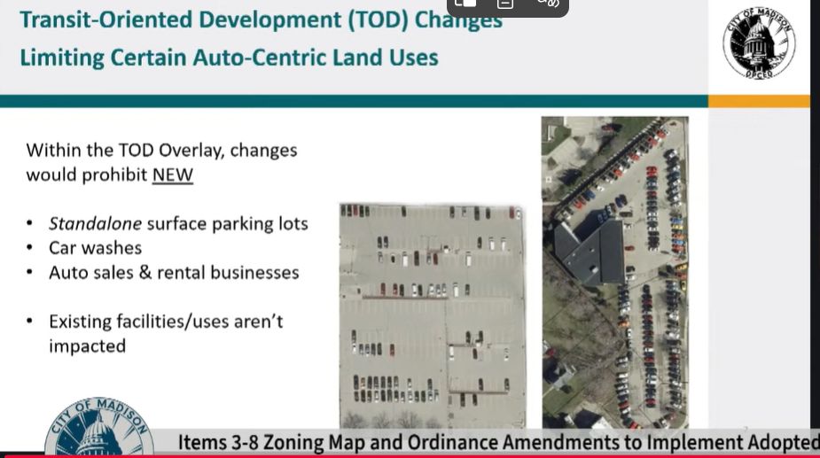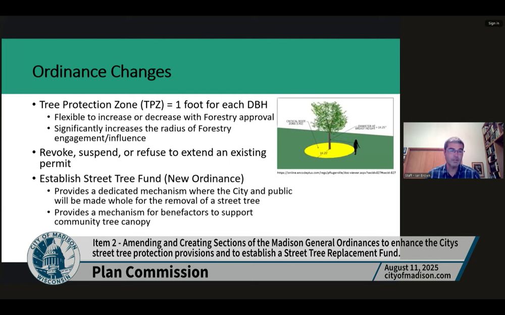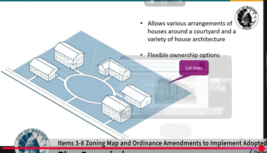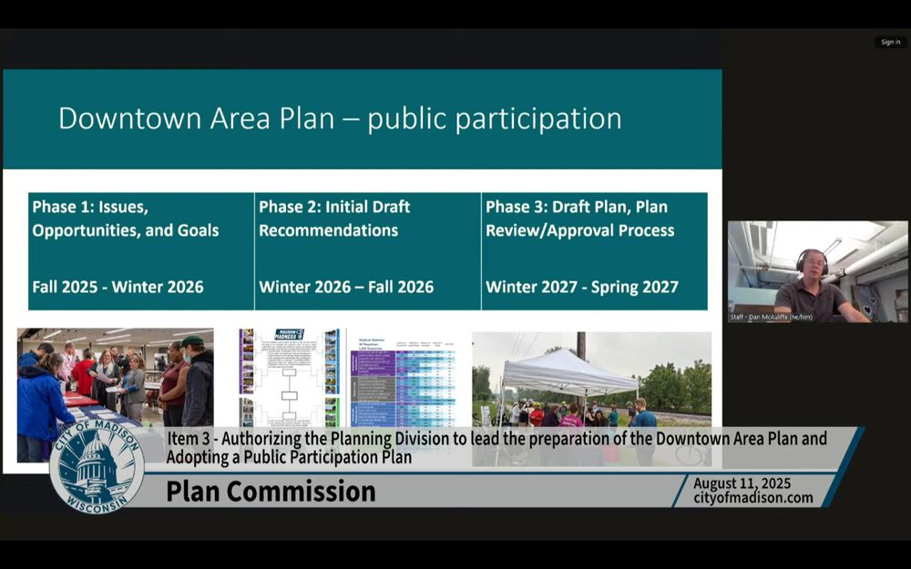 The Madison Plan Commission held a virtual meeting on December 1, 2025, advancing significant “Housing Forward” reforms to Transit-Oriented Development districts, approving the controversial no-parking downtown apartment building after months of delay, and greenlight several major housing projects.