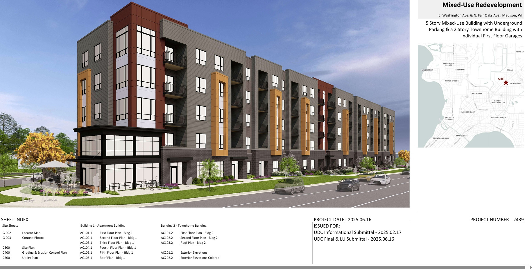 2025-10-20: The Madison Plan Commission held a virtual meeting approving several significant housing developments on Madison’s east side, including a 171-unit mixed-use building at East Washington and Fair Oaks, a 91-unit affordable senior apartment building at 3222 E Washington Avenue, and the return of the controversial Leo Living subdivision proposal after revisions. They also placed on file a 48-unit apartment building at 120 N Orchard Street.