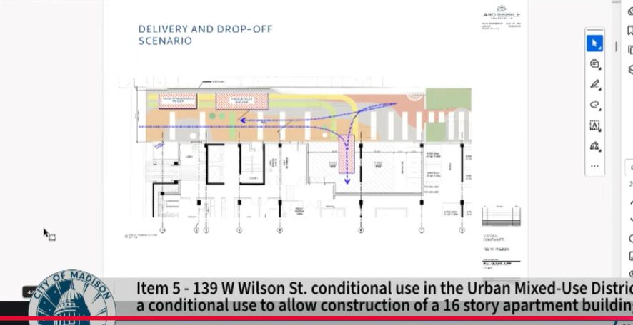 2025-11-17: The Madison Plan Commission held a virtual meeting addressing routine approvals including an adult day care conversion at 4718 Hammersley Road, historic water utility well reconstruction at 801 S Whitney Way, and additional plat approvals for the Starkweather development. They deferred continued discussion of the controversial 320-unit, no-parking apartment building at 139 W Wilson Street to December at the developer’s request.