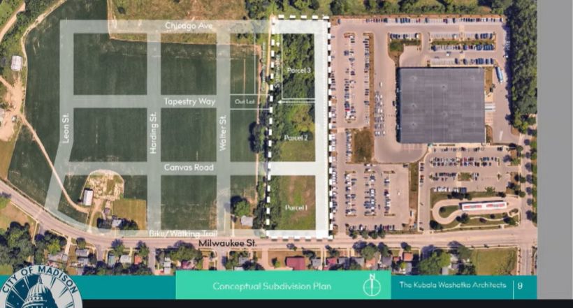 Property Owner Concerns: The other owner of property at Oscar Mayer expressed concern about a single building potentially blocking views from Packers Avenue of any future development from their property.