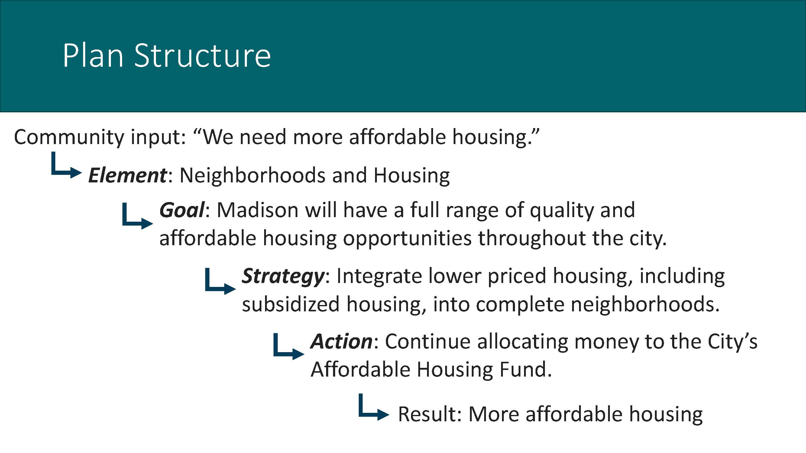 Heck also the City of Madison plans to address the new Comprehensive Plan planning process in 2028, inquiring as to whether the plan will be based off of the 2025 proposal or if the City will start from scratch. Staff responded this will likely be dependent on several factors and the efficacy of their 2025 Comprehensive plan, which they expect to begin evaluating some time in late 2025 or 2026