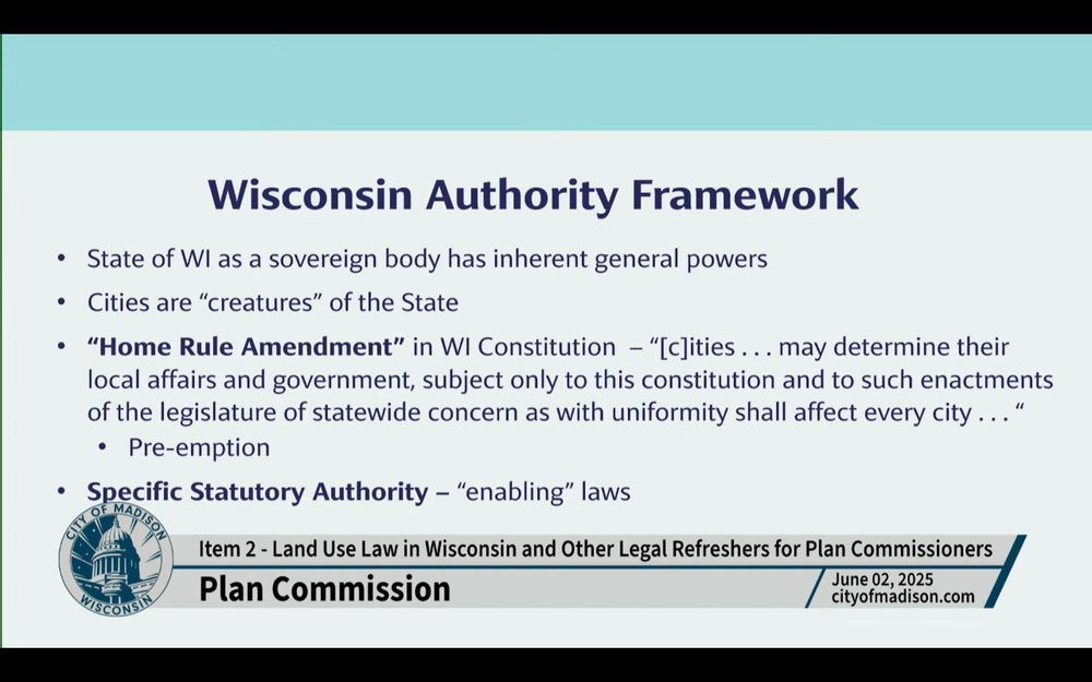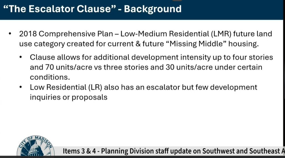 Heck also the City of Madison plans to address the new Comprehensive Plan planning process in 2028, inquiring as to whether the plan will be based off of the 2025 proposal or if the City will start from scratch. Staff responded this will likely be dependent on several factors and the efficacy of their 2025 Comprehensive plan, which they expect to begin evaluating some time in late 2025 or 2026