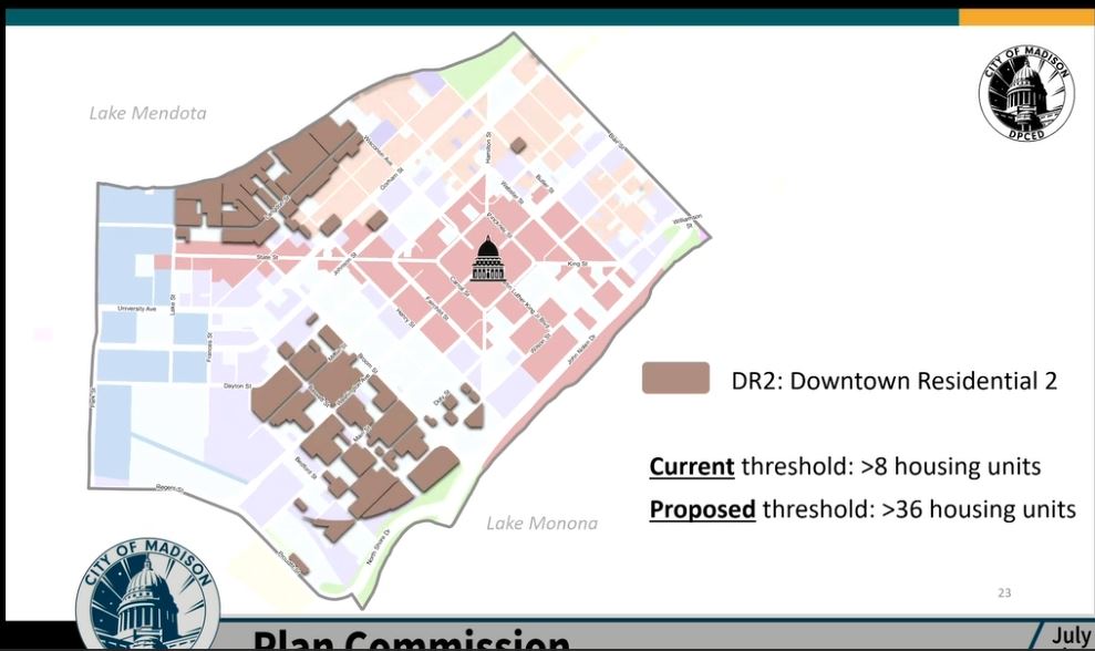 - 623 N Lake Street (District 2): Consideration of a conditional use in the Downtown Residential 2 (DR2) District for a multi-family dwelling with greater than eight (8) dwelling units, and consideration of a conditional use in the DR2 District for a lodging house, all to allow alterations to an approved eight-story mixed-use building to contain 21 apartments and a ten-room lodging house. (Legistar 86728)