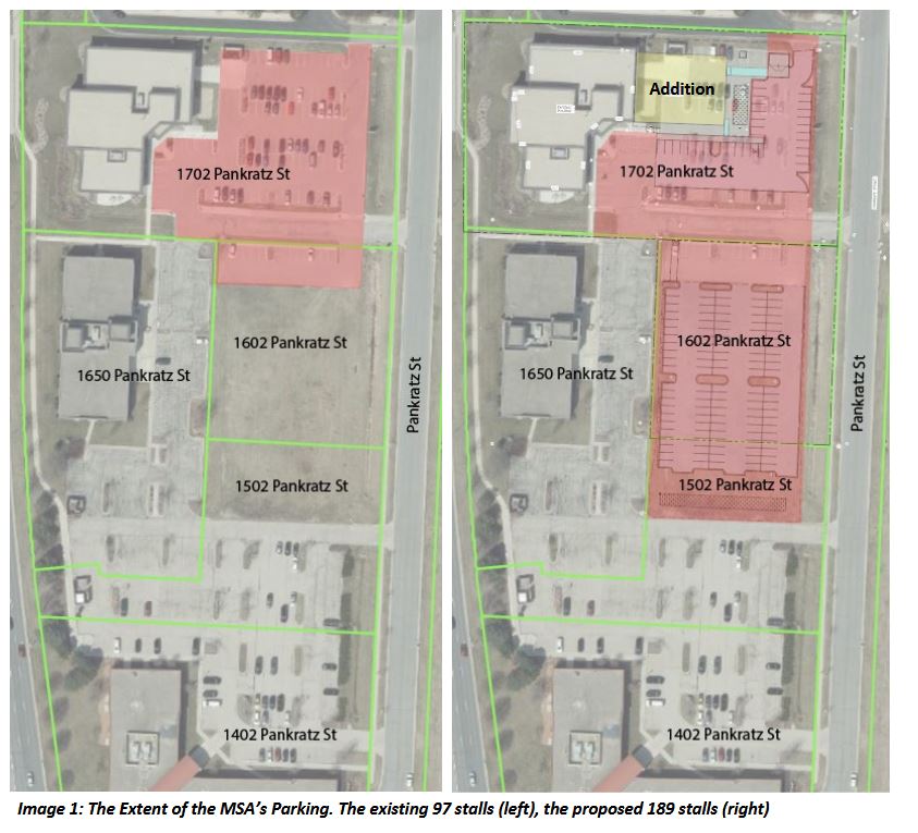 Legistar 87471 and 87475 both concerned additional parking for UW—the former being for conditional use in an Industrial-Limited (IL) District and the later for approving a certified survey map of a property owned by Madison Square Storage, LLC. in order to make way for a parking lot located at 2230 Pennsylvania Avenue in District 12.