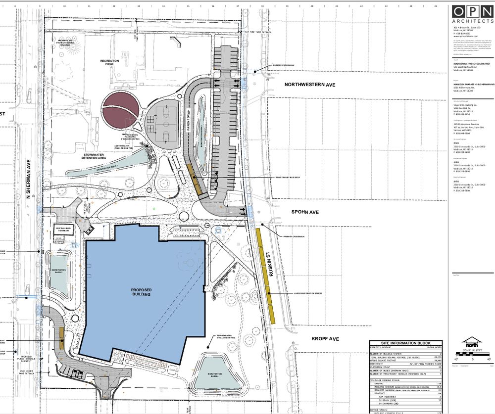 Property Owner Concerns: The other owner of property at Oscar Mayer expressed concern about a single building potentially blocking views from Packers Avenue of any future development from their property.