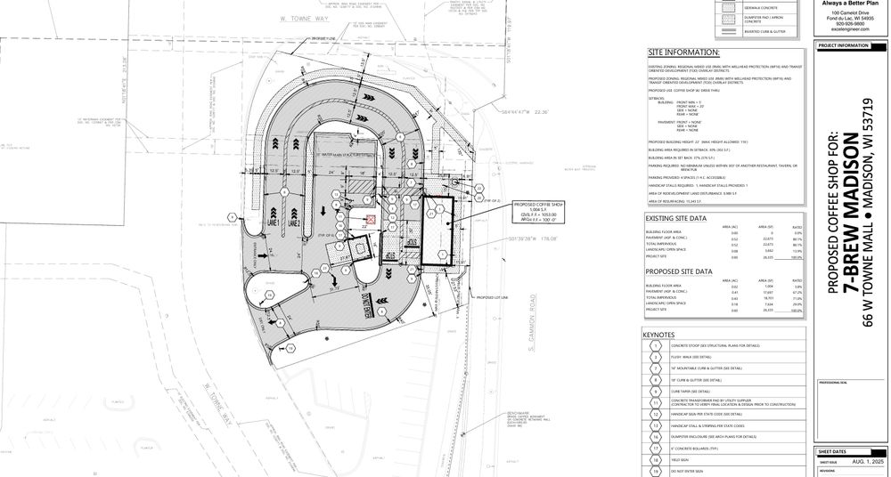 2025-04-7: Approved a new surface parking lot for a UW-Madison park-and-ride at 2230 Pennsylvania Avenue, and a new electric generator at Greentree Landfill.