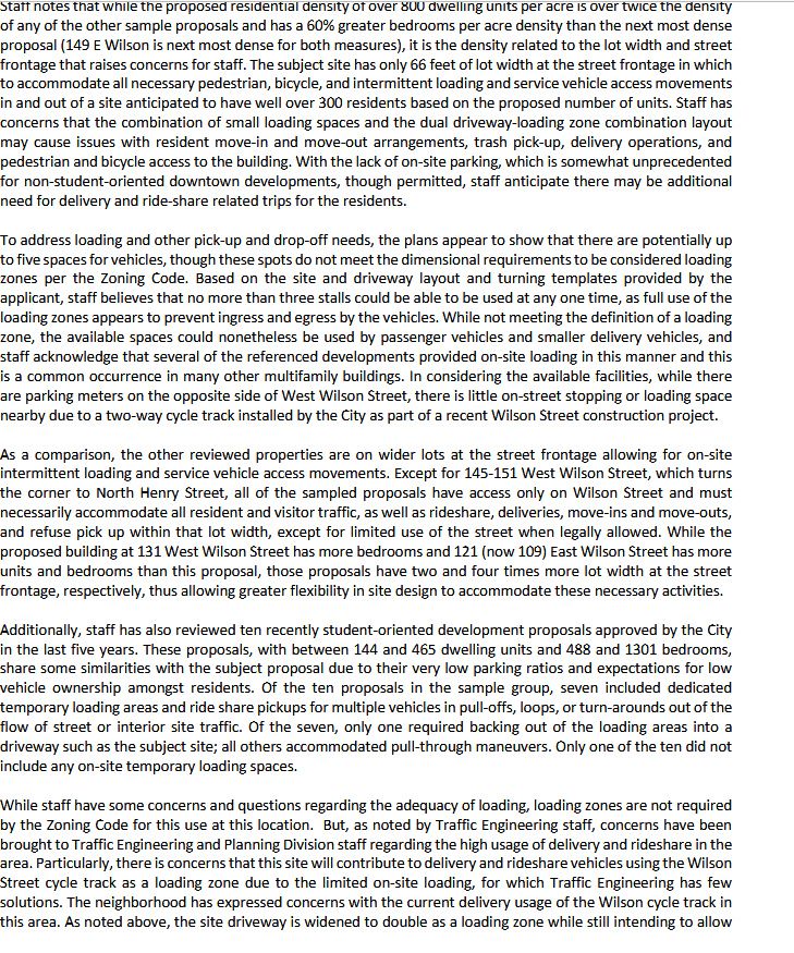 Commissioner Heck specifically asked if this would be a free or paid parking option. Butcher, being with the developer and not UW Transportation, did not know. Commissioner Mendez did not contribute to the conversation or provide additional information regarding UW-Madison’s planned use of the lot, despite being the Director of Transportation Operations.