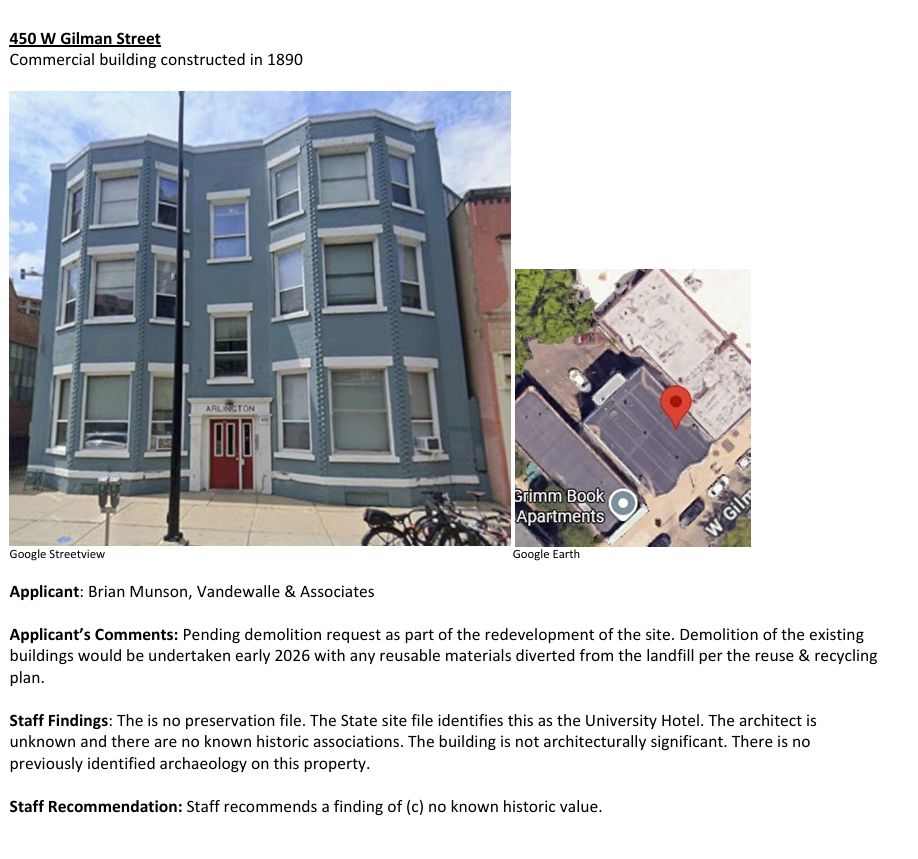 - The proposed demolition of two homes in the Wingra Neighborhood, with plans to build one single-family residence in their place.