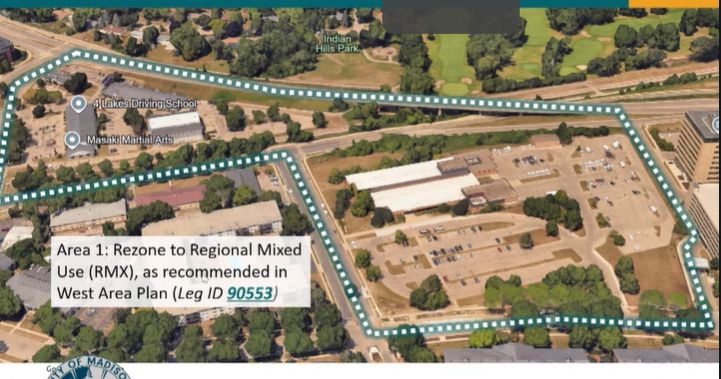 - Conditional use at 6702 Odana Road in District 19 in a Commercial Center (CC) District for dwelling units in a four-story mixed-use building with approximately 1,973 square feet of commercial space and 60 apartments Legistar 87141.