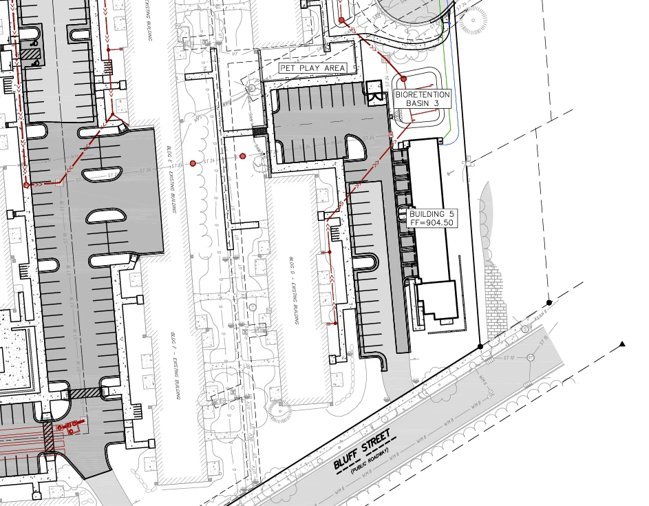 Joann Rubio, a member of the development team proposing future housing on the parcels, stated they believe their team would be meeting the Pumpkin Hollow development objectives by constructing a mixed-use building which would be available to families, seniors, and community resources. Rubio further argued the Department of Natural Resources does not include the intermittent stream in their 1988 assessment as an environmental corridor—noting the DNR has not issue with the proposed building plans so long as the developer recognizes and utilized the natural drain-off. Rubio also mentioned retaining walls were only included in the proposal due to the developer’s haste in getting their paperwork submitted to the City, but that they were open to modifications and suggestions on how to best address both the flood plains and grading of the parcels. Commissioner Solheim asked Staff Tim Parks to review the DNR’s assessment, to which Parks responded, noting the City is aware of the stream’s impact on the parcel. Parks emphasized its importance, noting is is protected by both “law and environmental ethos,” and clarifying its not being included in the DNR’s assessment does not negate its importance to local waterways. According to City records and the Staff report, the intermittent stream begins on the property before joining other tributaries that ultimately flow into Starkwater Creek.