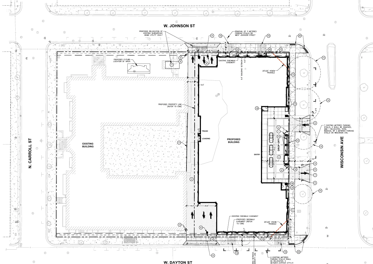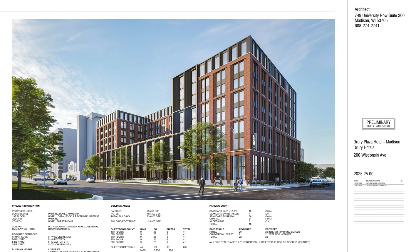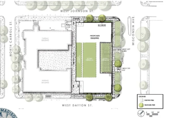 Planning Context: The new building is a permitted use under the existing zoning, meaning most design approvals will occur at the Urban Design Commission rather than the Plan Commission. The one exception is the project’s pool amenity, which will return to the Plan Commission at a future meeting.